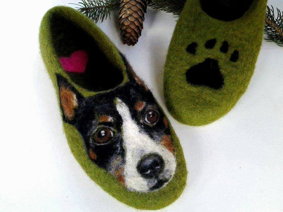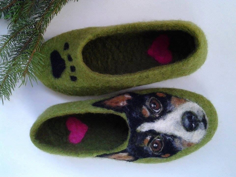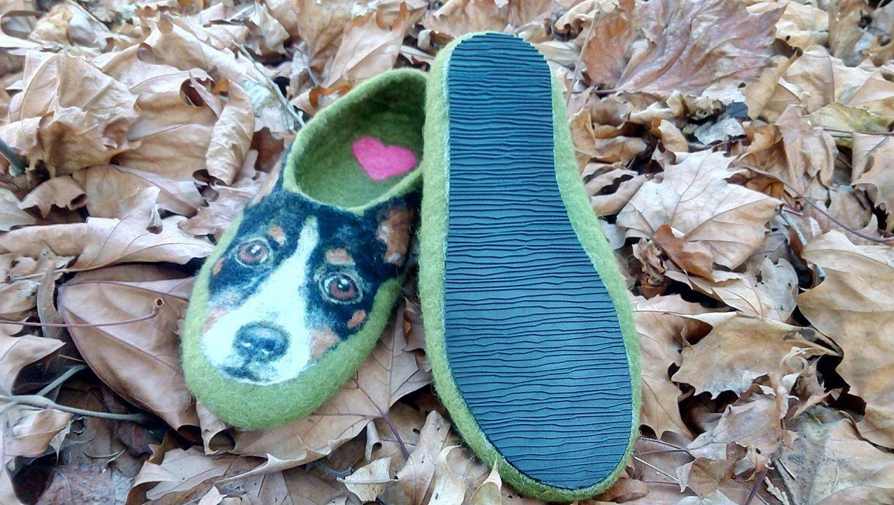 Original handmade slippers with portrait of your friend on paws.