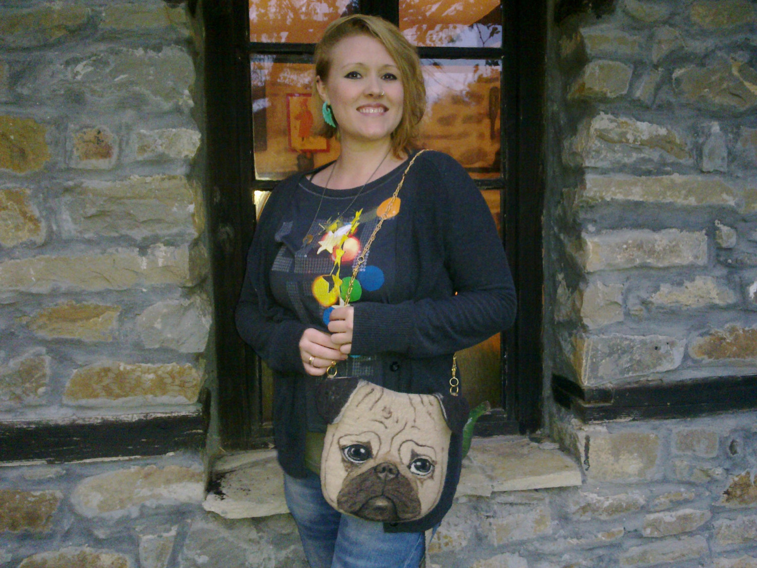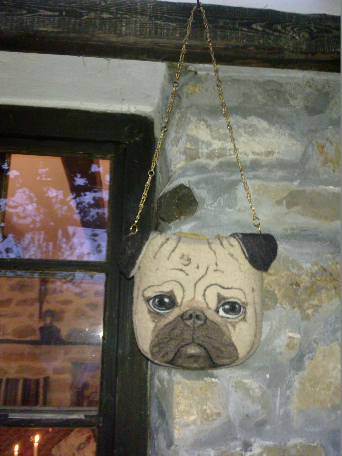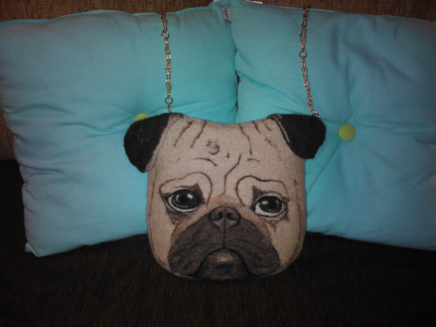 Original Author handcrafted felt purse with your dog portrait – Pug face.