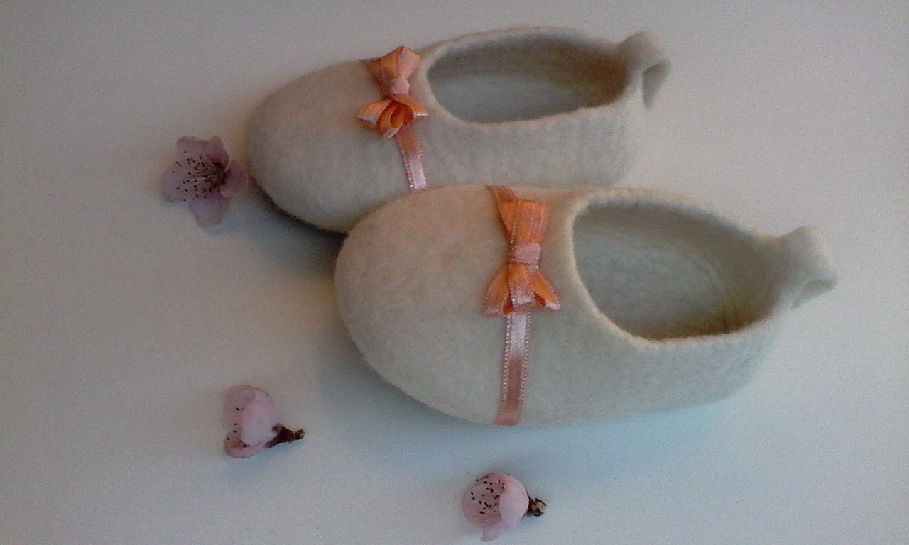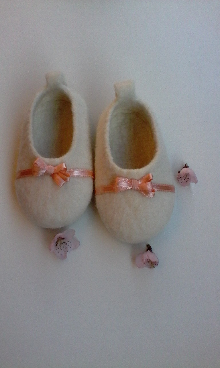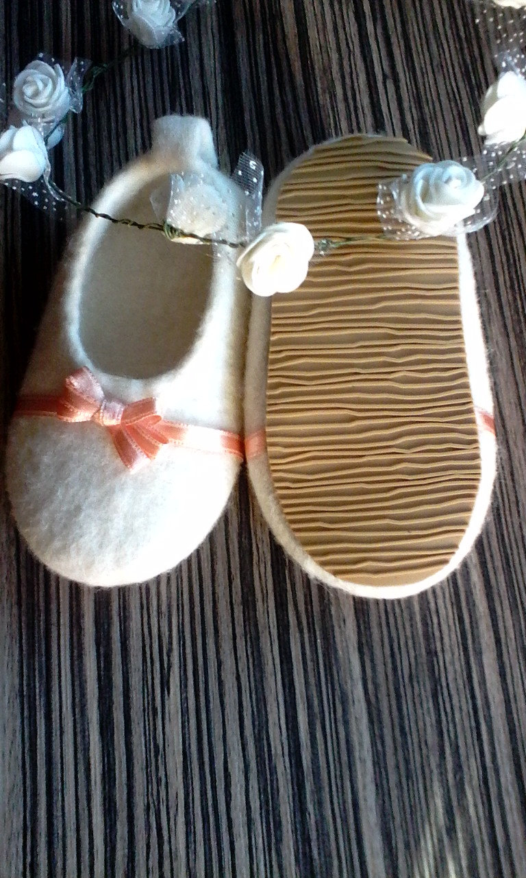 These slippers are amazingly light and comfortable – your baby will not feel them when walking. I recommend to wear wool slippers on bare feet, cause woollen items have healing properties. Feet can breath and do not sweat. After few wears the shoes will take a shape of feet. On the bottom they are covered with a thermo rubber sole.