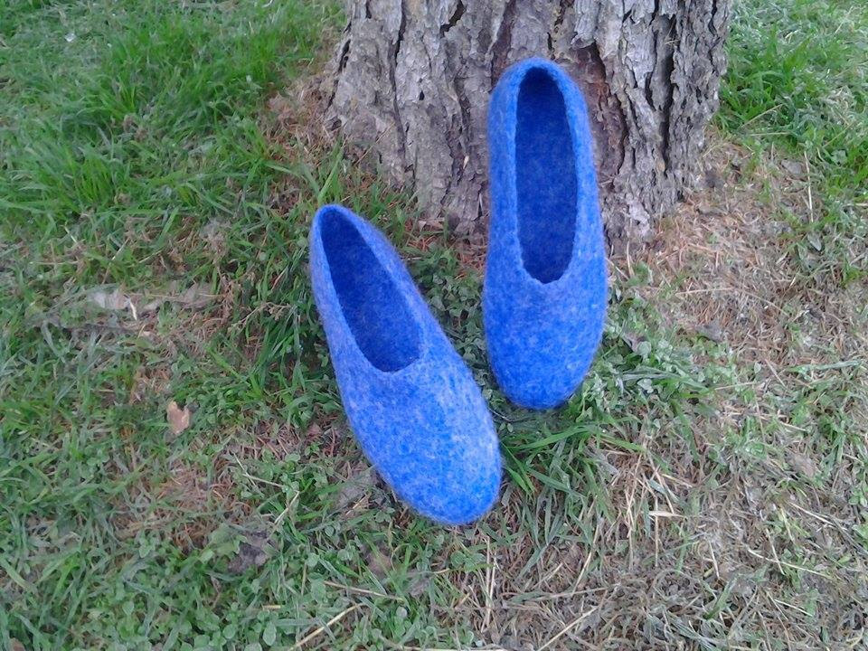 Slippers made from colored sheep’s wool. The sole of slippers is thermo rubber. That keeps slippers non slippery.