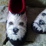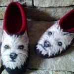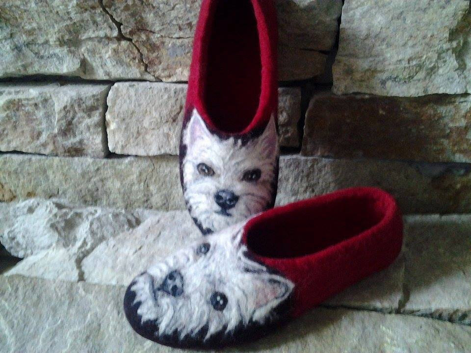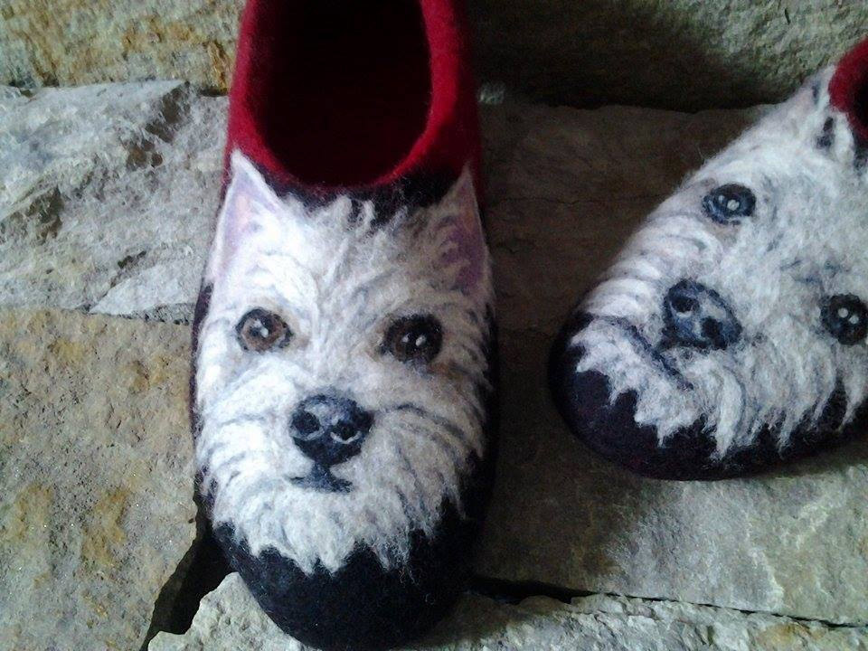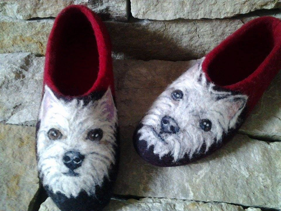 One of a kind felted slippers with a portrait of your lovely dog. The perfect gift for your friends and family.