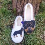 Handmade original felted slippers with portraits of your dog. Very suitable for an unique and unforgettable gift.