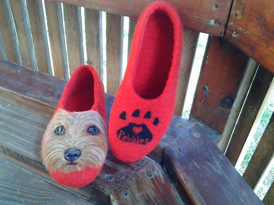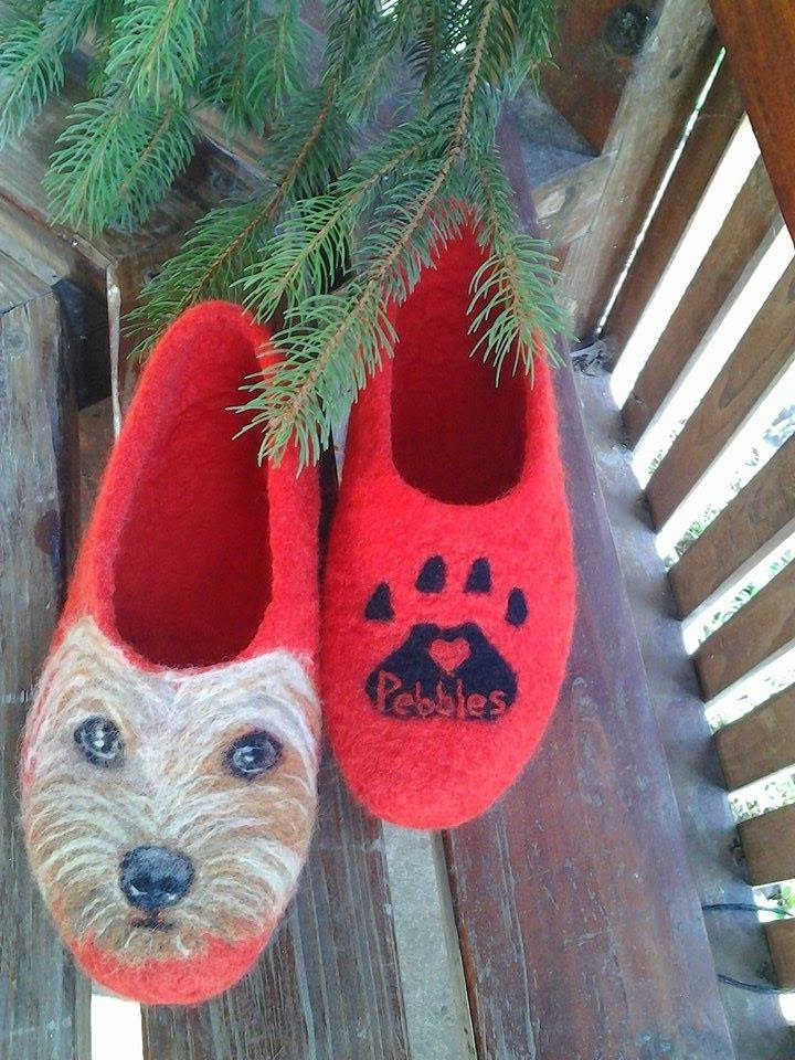 Unique felted slippers with a portrait of your lovely dog. The perfect gift for your friends and family.