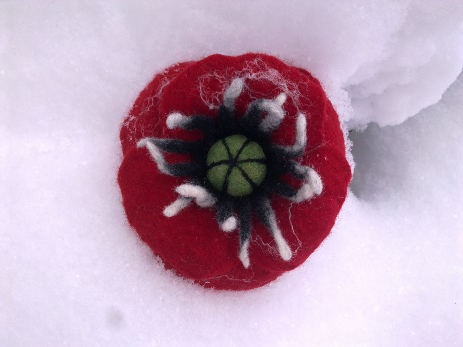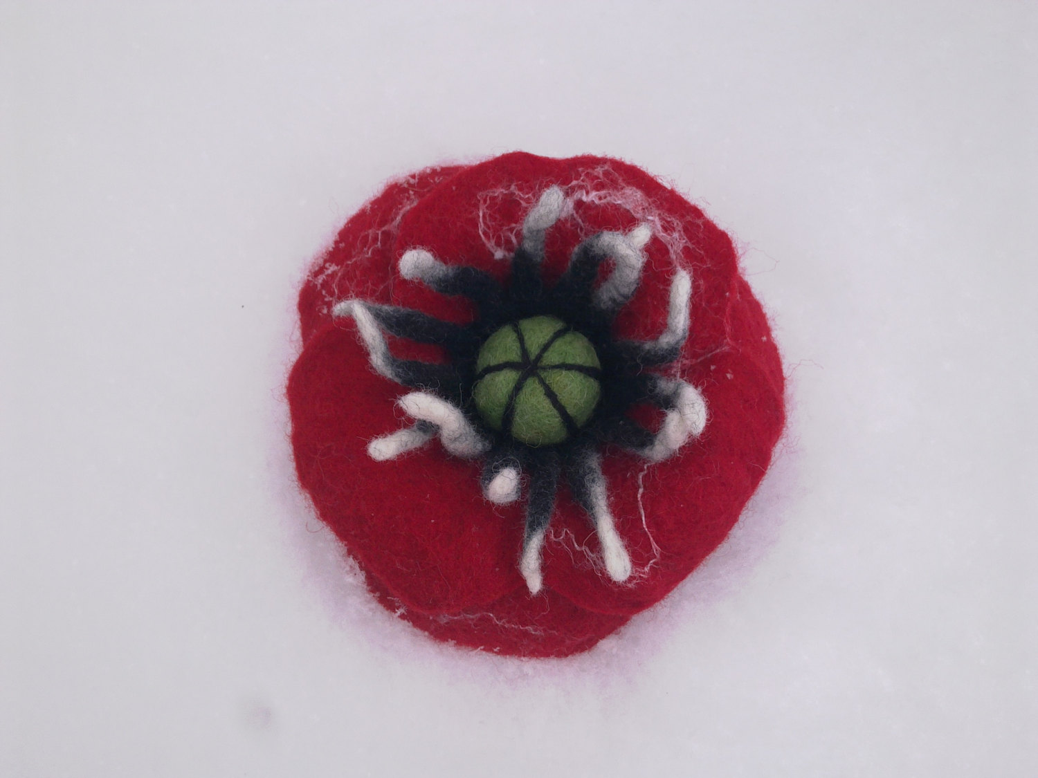 Beautiful Red poppy is wet felted with 100% Australian merino wool.