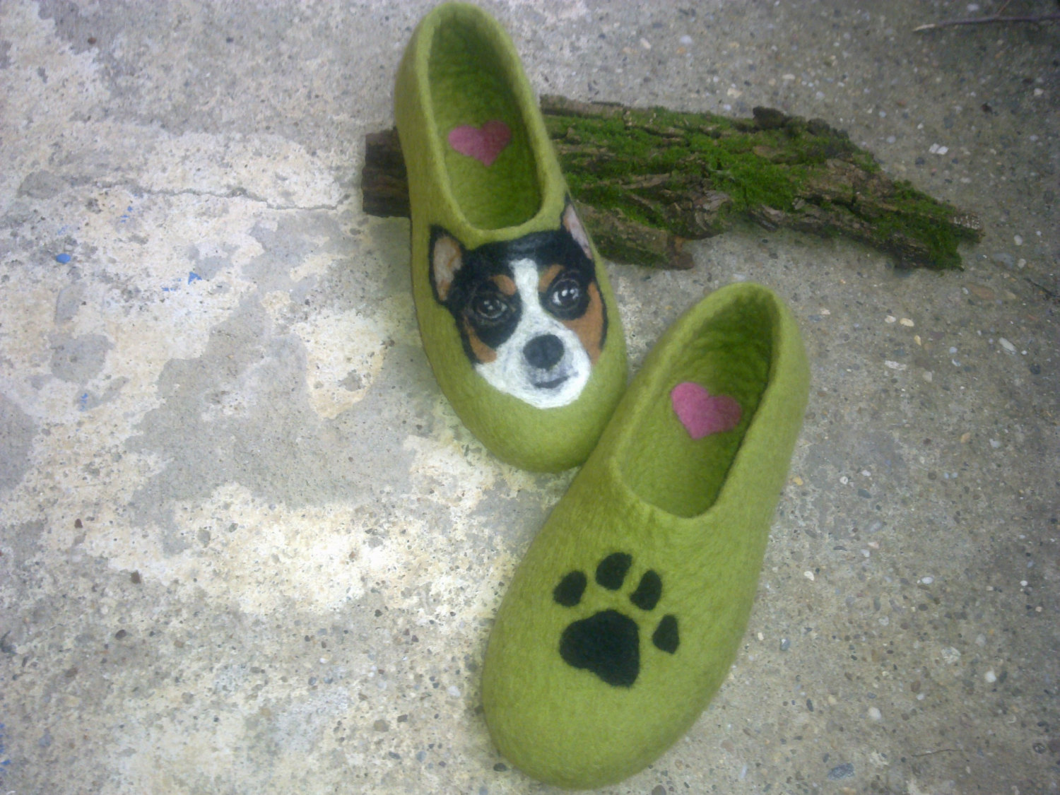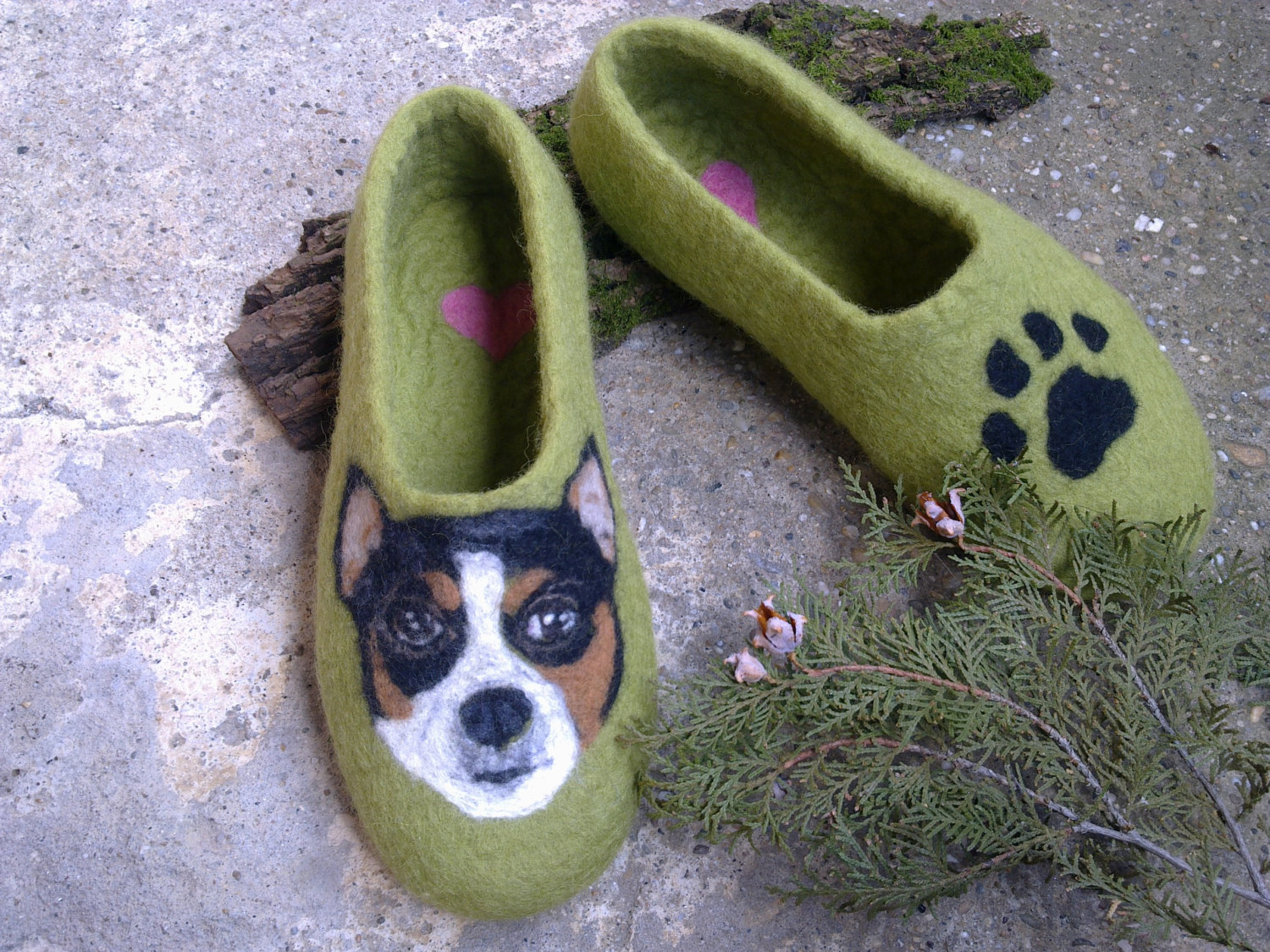 Original handmade slippers with portrait of your dog make with love and care for you and your family. Custom made slippers with portrait of your dog. Please, send me a picture of your pet and I’ll put it on the slippers.