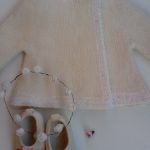 Adorable baby girl white Christening set – White coat with lace, white shoes with pink ribbon for girl, great gift for Birthday, Christening, Baptism.