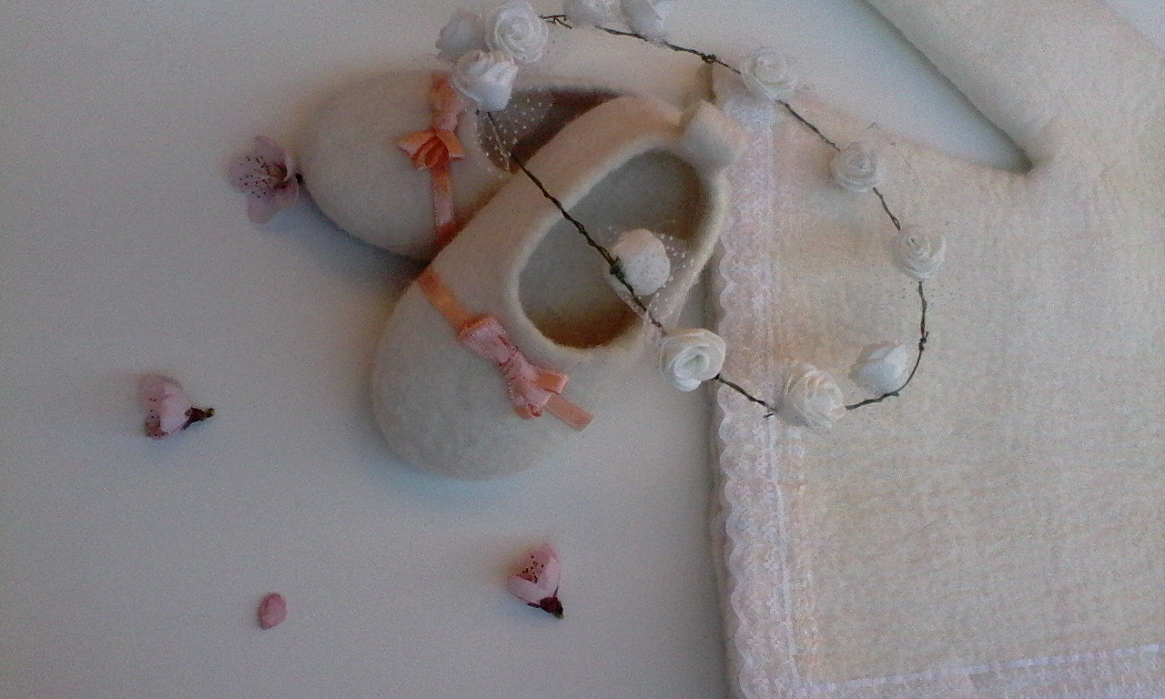 The slippers are amazingly light and comfortable – your baby will not feel them when walking. I recommend to wear wool slippers on bare feet, cause woollen items have healing properties. Feet can breath and do not sweat. After few wears the shoes will take a shape of feet. On the bottom they are covered with a thermo rubber sole.