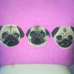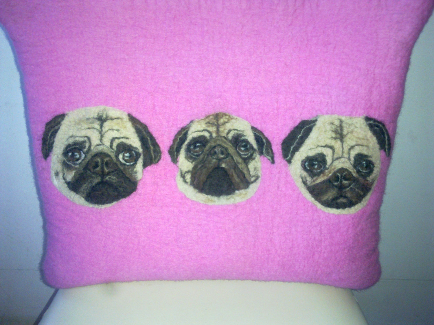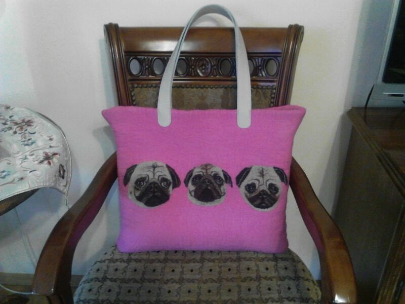 Original Author handcrafted felt bag with your dog portrait – three pug faces.
