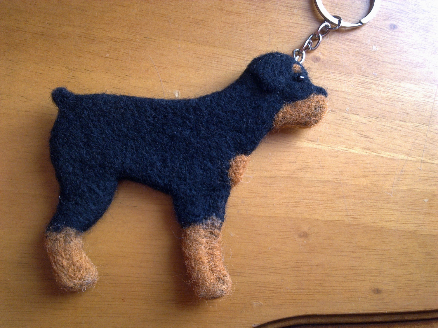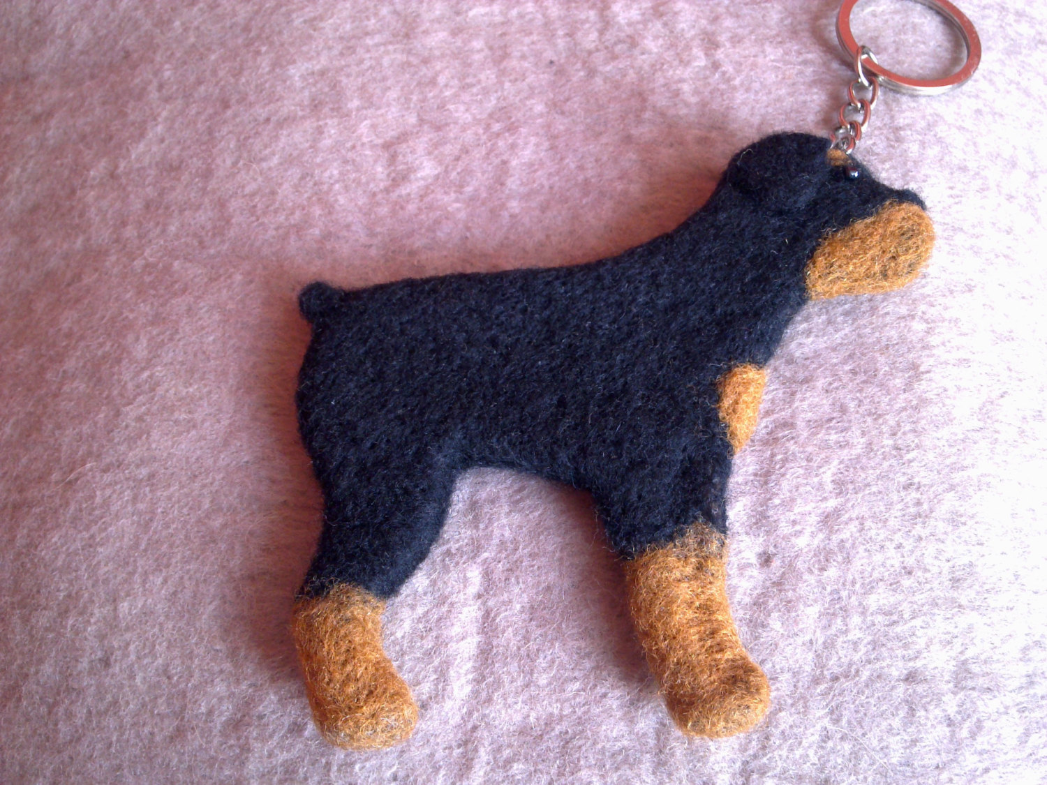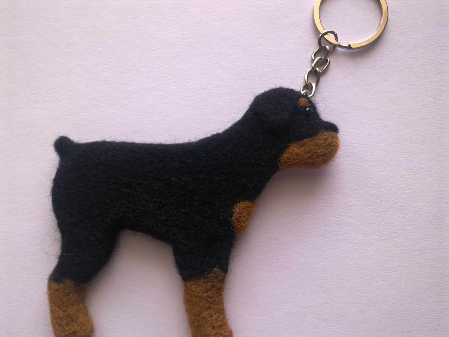 Wool felted handmade key chain with Rottweiler dog. Very original gift for dog lovers.