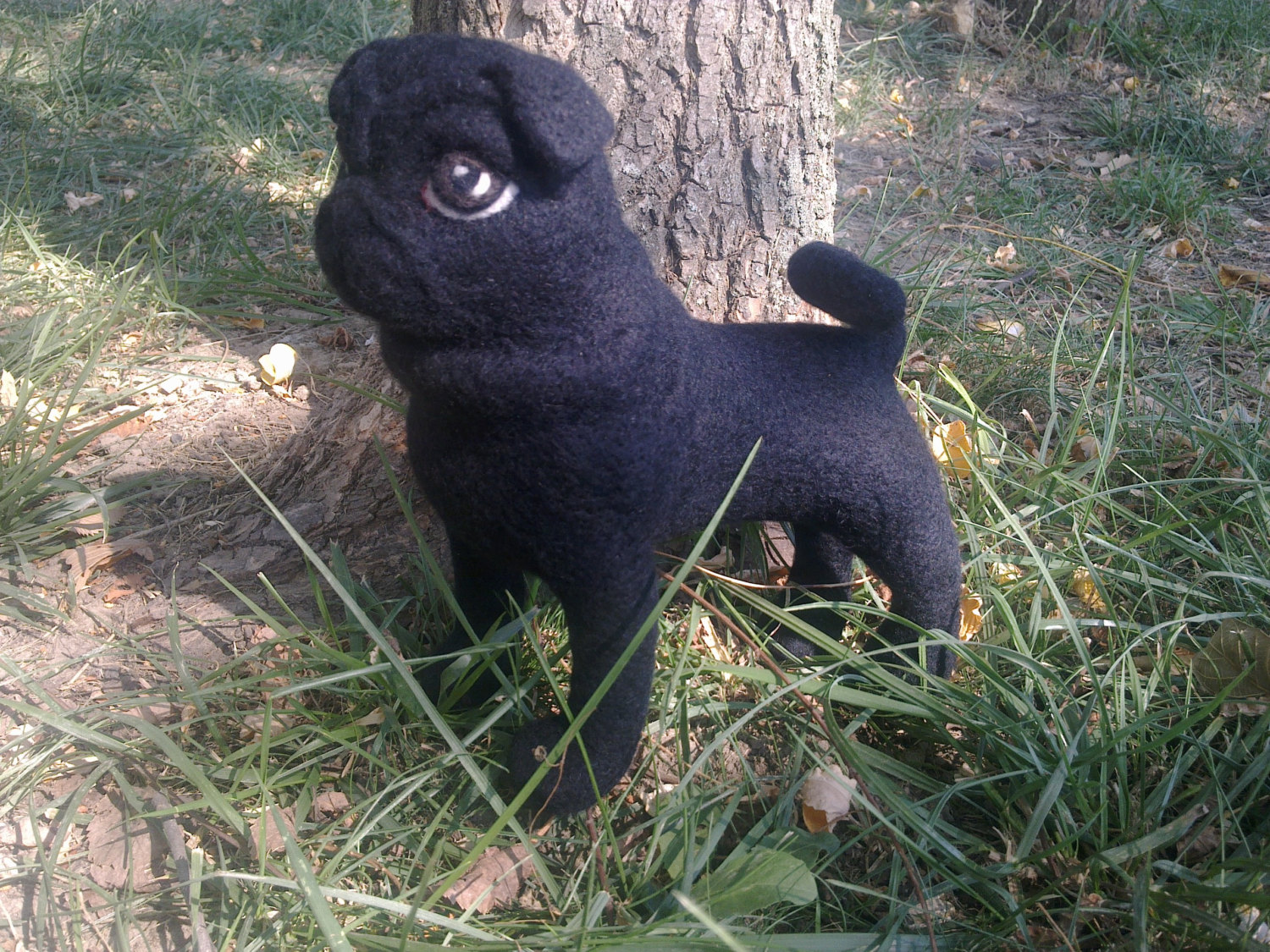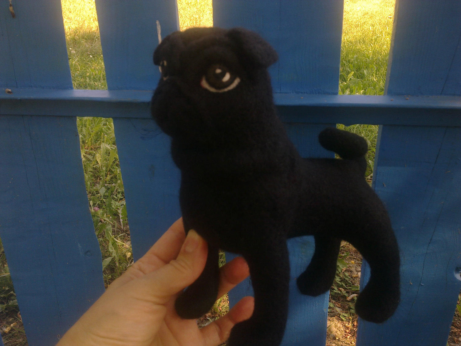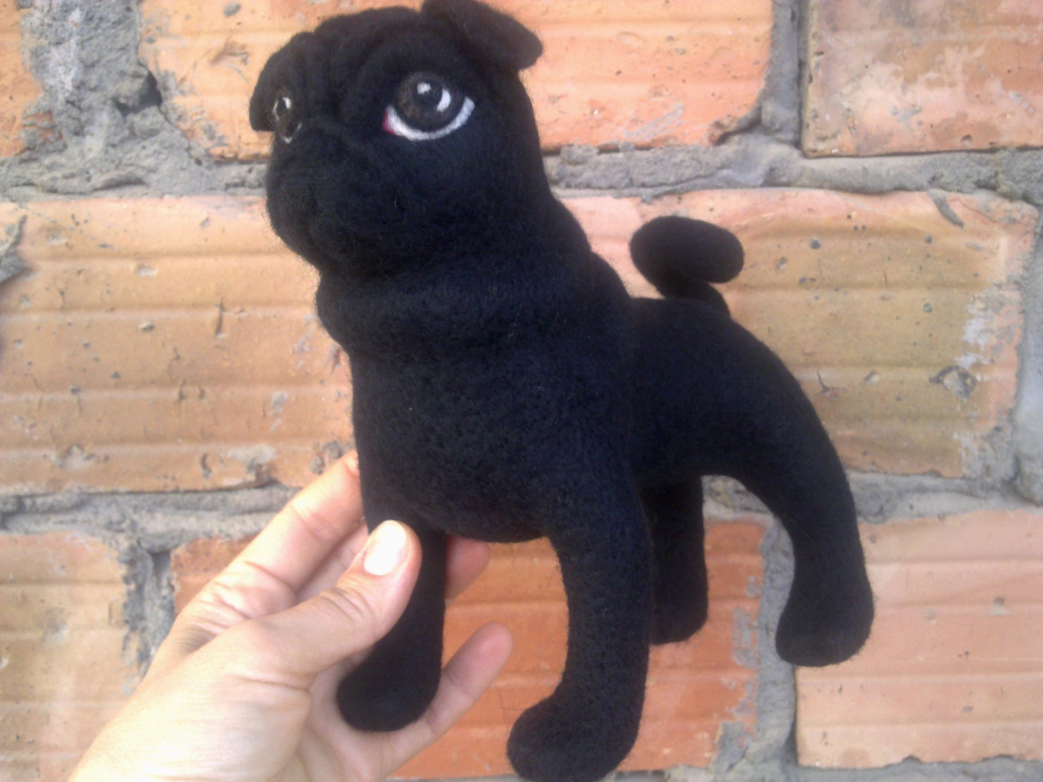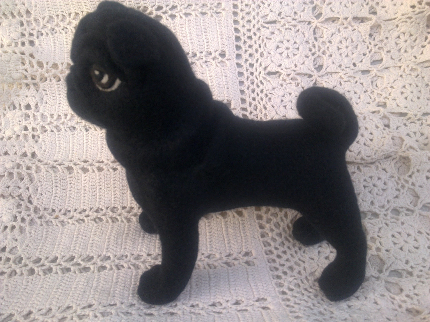 Handmade soft sculpture black pug is a great gift for pug and dog lovers.