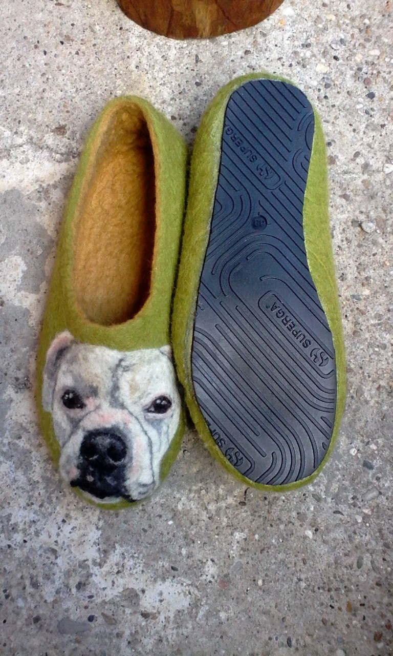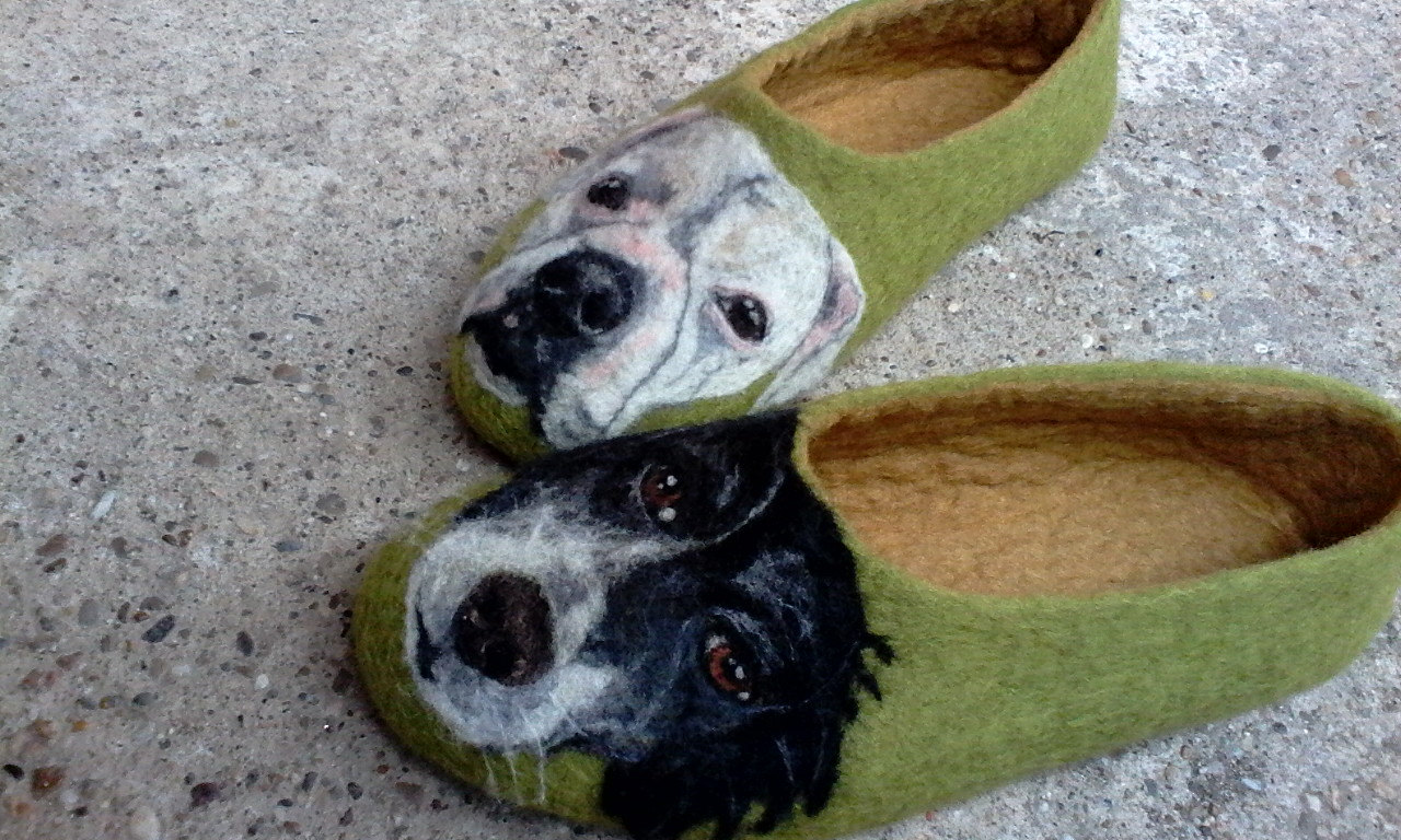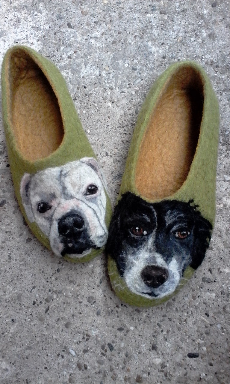 Original handmade slippers with portrait of your dogs make with love and care for you and your family. Custom made slippers with portraits of two dogs. Please, send me a picture of your pet and I’ll put it on the slippers.