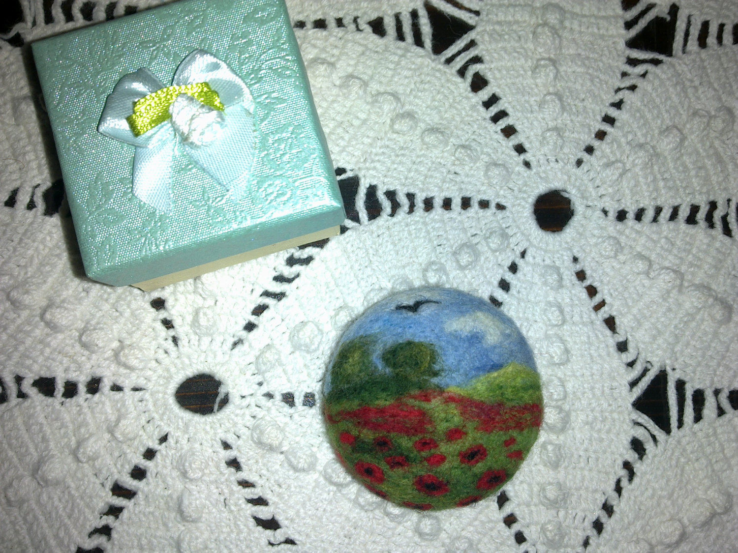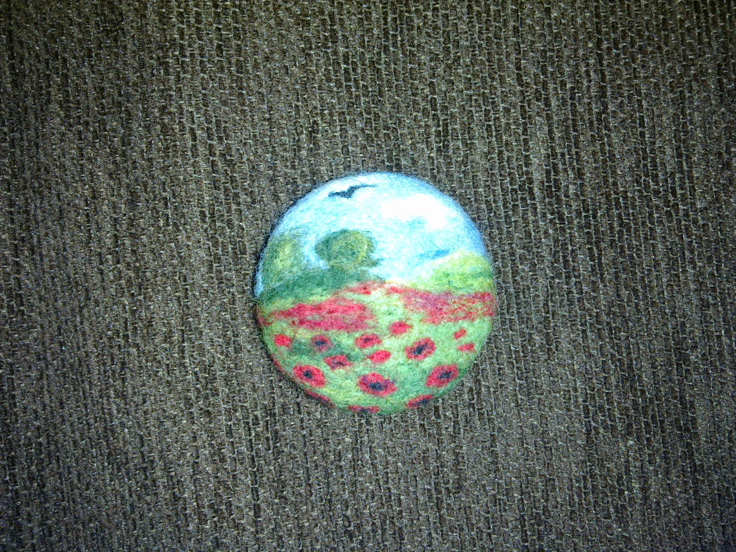 Beautiful poppy field brooch. Handmade of fine merino wool. Make with love and tenderness for your precious.