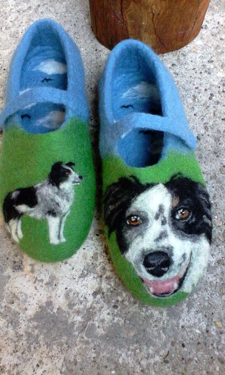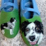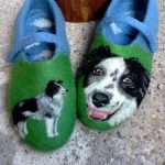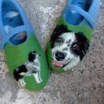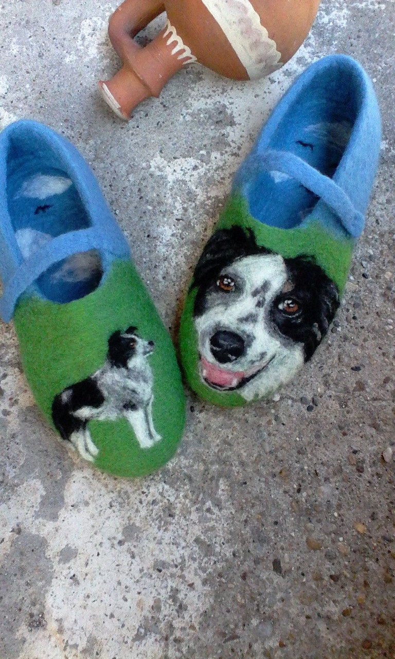 Original handmade slippers in Mary Jane style with portrait of your dog make with love and care for you and your family. Custom made slippers with portrait of a Border Collie dog. Please, send me a picture of your pet and I’ll put him on the slippers.