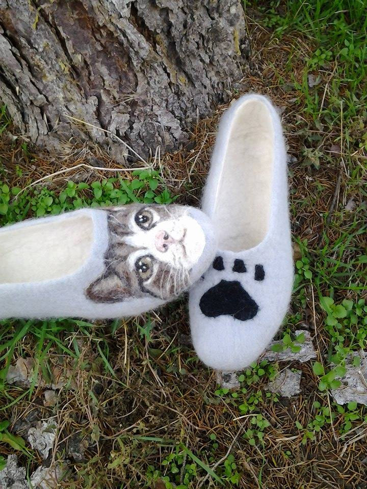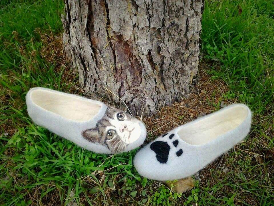 Unique cat slippers, Custom felted slippers