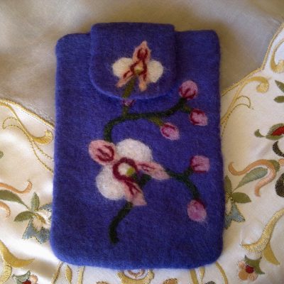 Wool felted phone case Orchid Floral cover