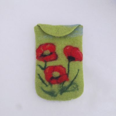 Handmade felt Iphone Red Poppy case