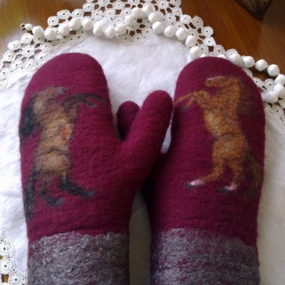 Custom made mittens, Purple and grey Rear Horses